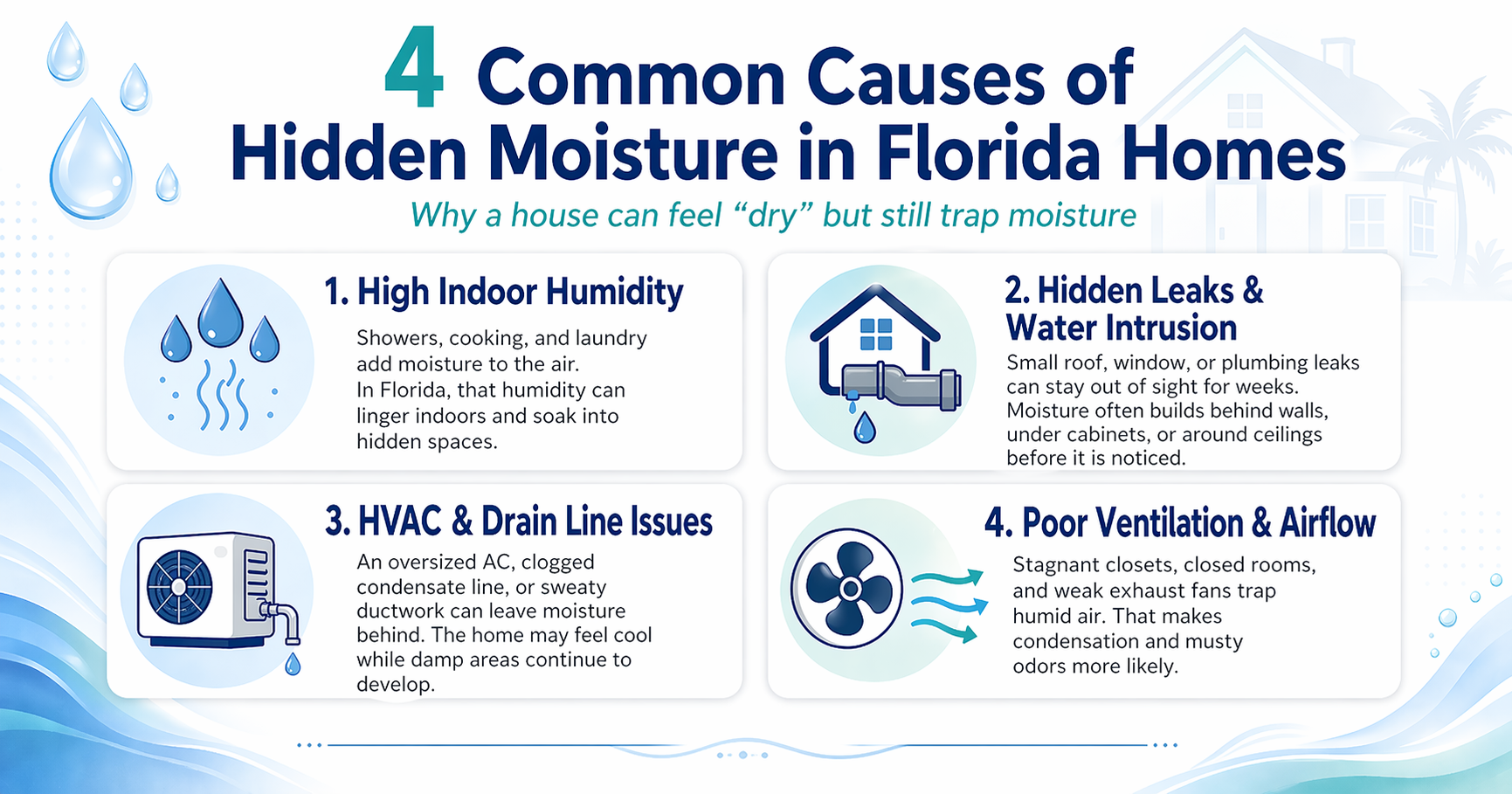 A Florida home can feel cool, comfortable, or even “dry” and still have a serious moisture problem.